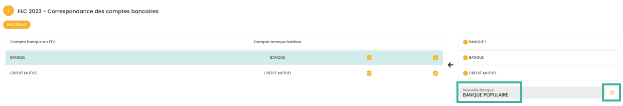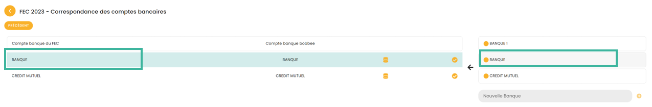 Cette étape consiste à associer les comptes bancaires présents dans le FEC avec ceux existants dans le dossier.