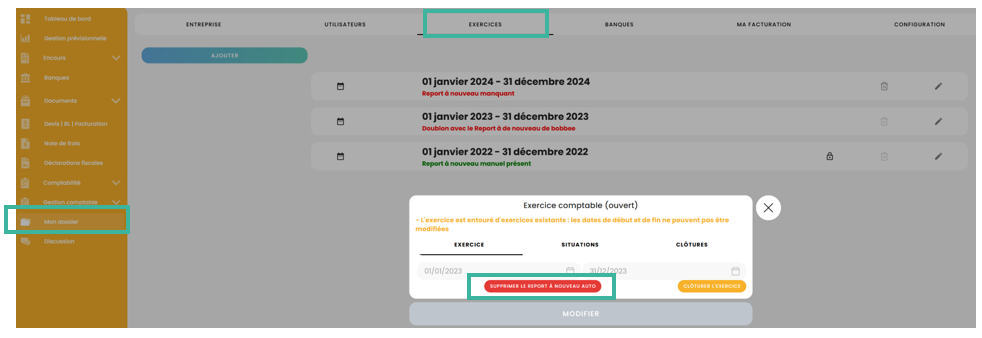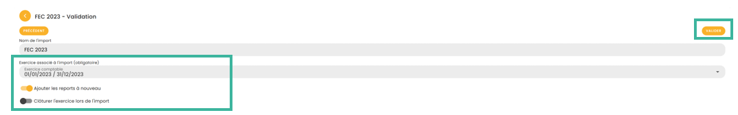 Vérifiez l’exercice d’import et indiquez si vous souhaitez ajouter les reports à-nouveaux et/ou clôturer l’exercice après l’import.