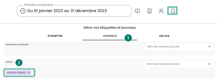 Pour visualiser les sous-journaux créés, cliquez sur le bouton Étiquettes puis allez dans l’onglet Journaux.