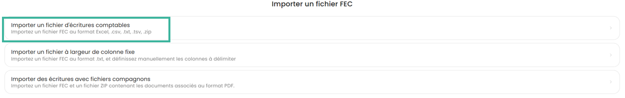 Cliquez sur Importer puis sur Importer un fichier d’écritures comptables.