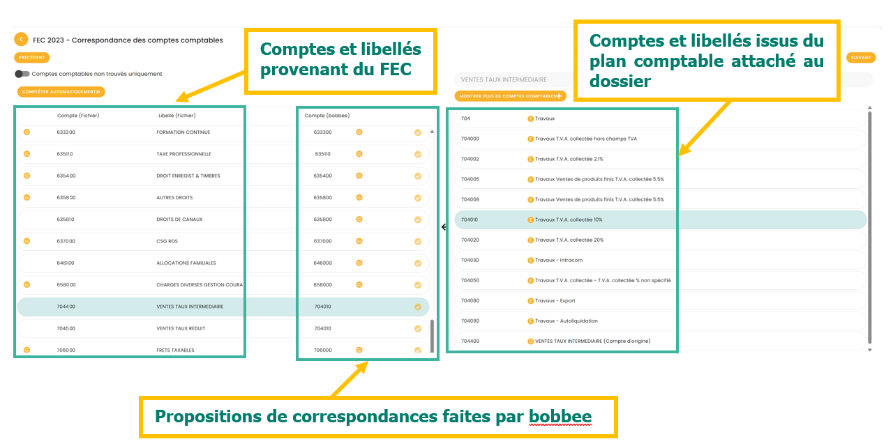Cliquez sur Suivant pour accéder à la correspondance des comptes clients et fournisseurs.