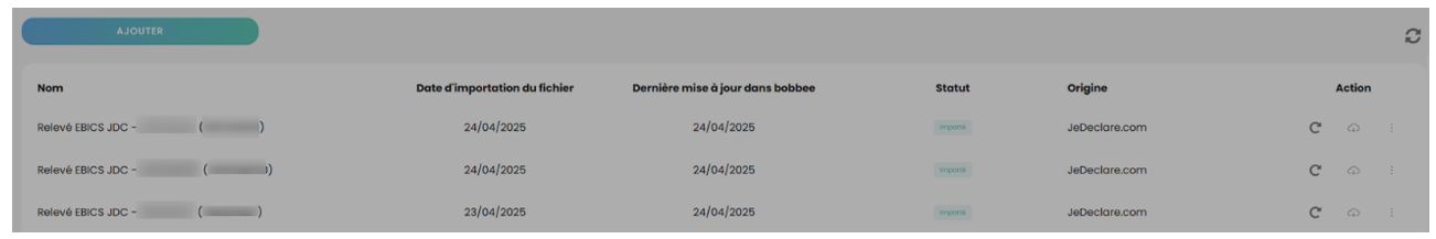 La colonne 'Statut' permet de visualiser si l’import s’est effectué avec succès ou avec erreurs.