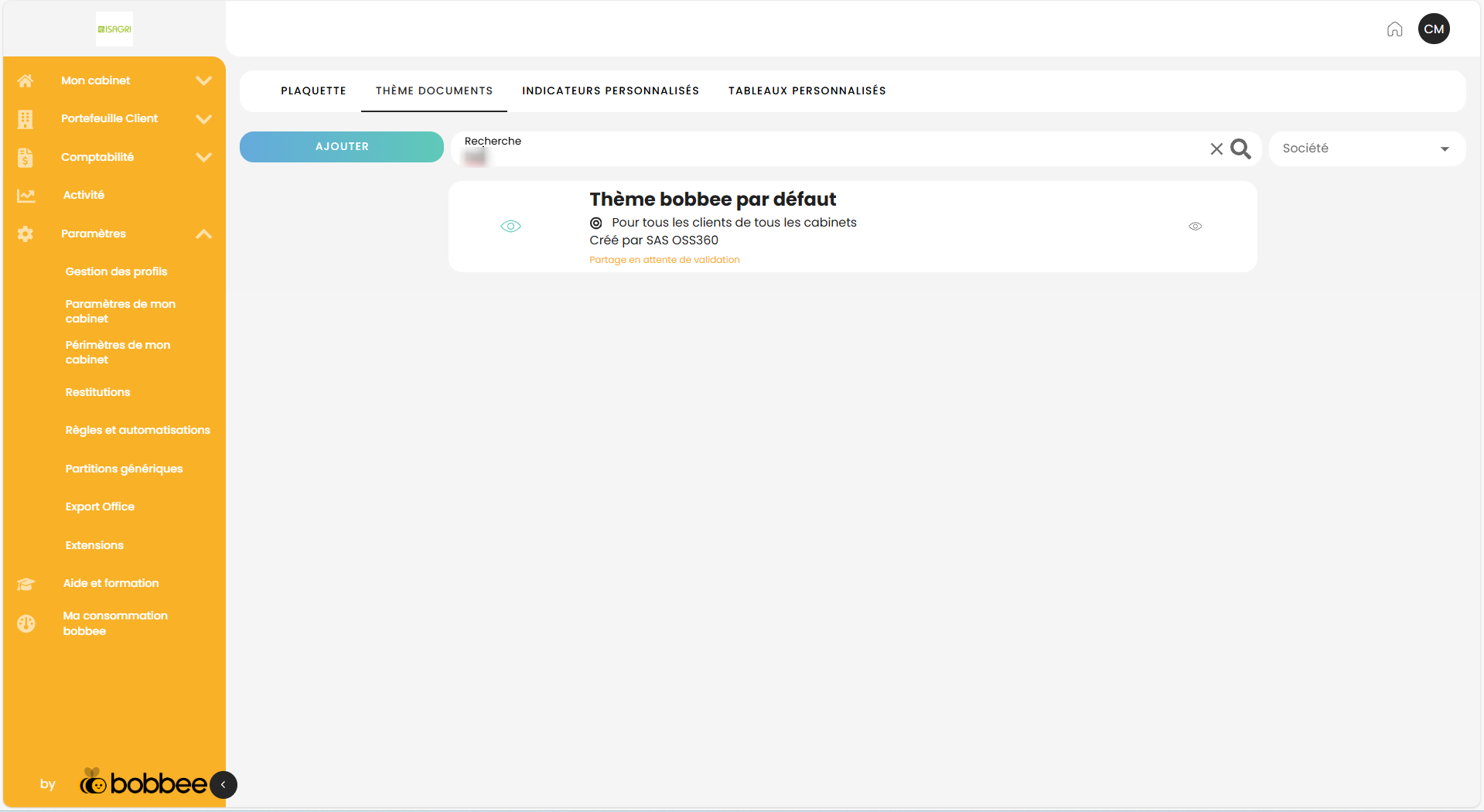 Dans la Gestion interne menu Paramètres / Restitutions, l’onglet Thème documents permet de personnaliser des thèmes pour vos documents. Un thème est proposé par défaut par bobbee.