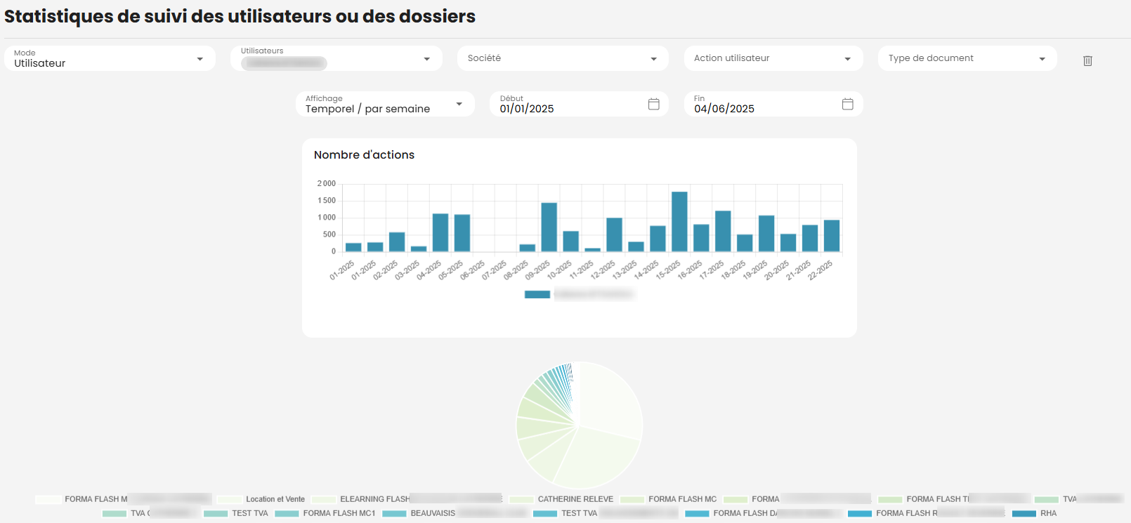3. Menu Activité : permet de visualiser les statistiques de suivi des utilisateurs ou des dossiers.
