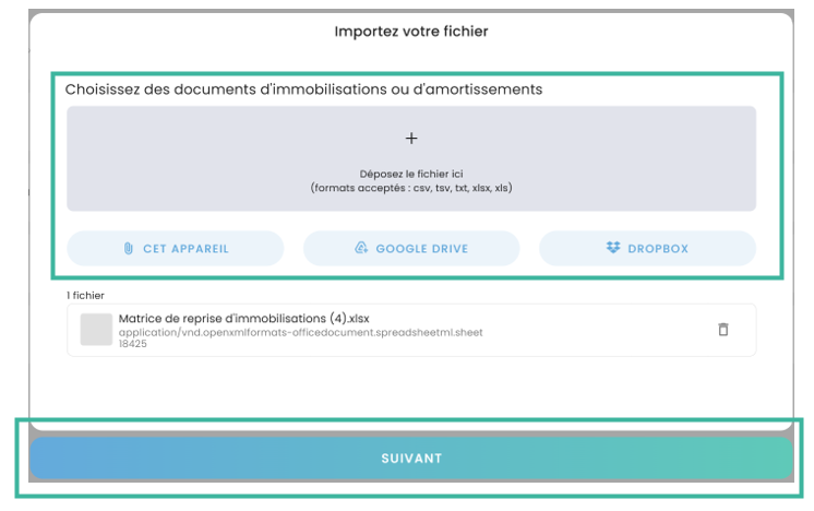 Sélectionnez votre fichier et cliquez sur Suivant.