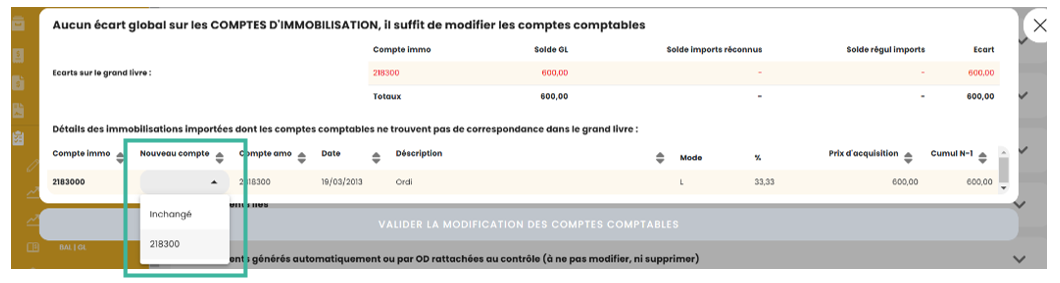 Dans ce cas, une alerte s’affiche pour effectuer la bonne correspondance des comptes.