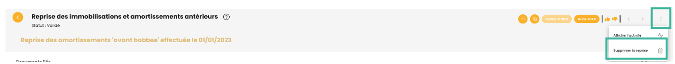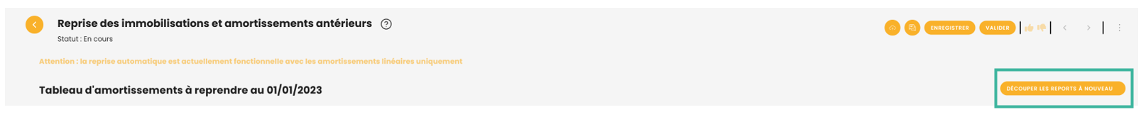 Reprise des immobilisations antérieures