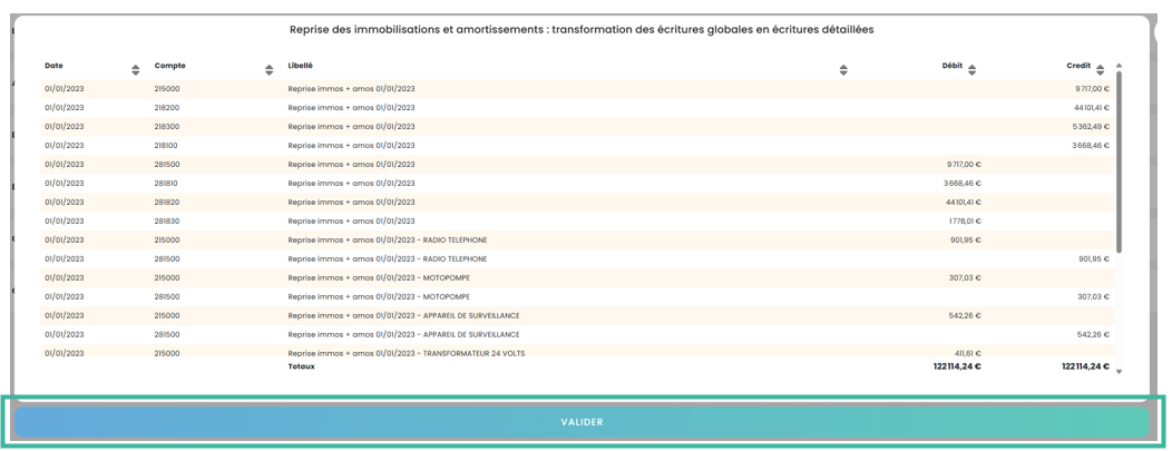 Une fois le fichier importé, bobbee propose un découpage des à-nouveaux qui ont été importés de manière globale dans chaque compte d’immobilisation.
